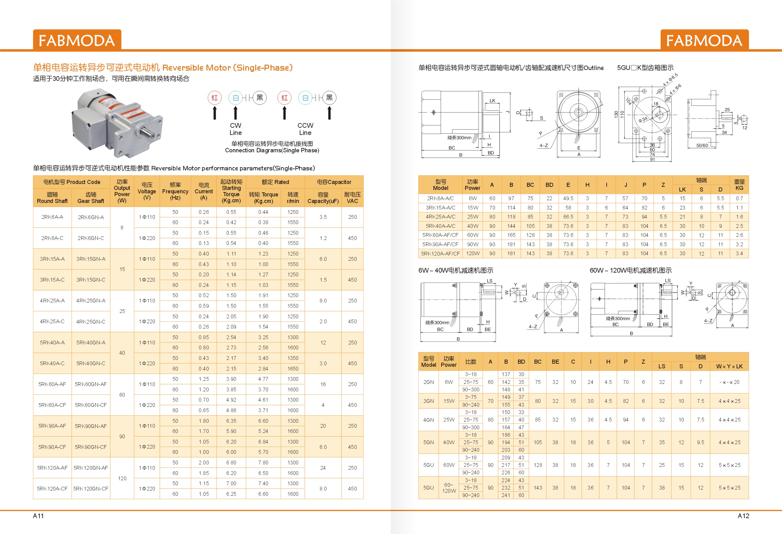 Bạn có thể tham khảo thêm thông số kỹ thuật của Motor giảm tốc FABmoda 6W-120W theo hình bên dưới: