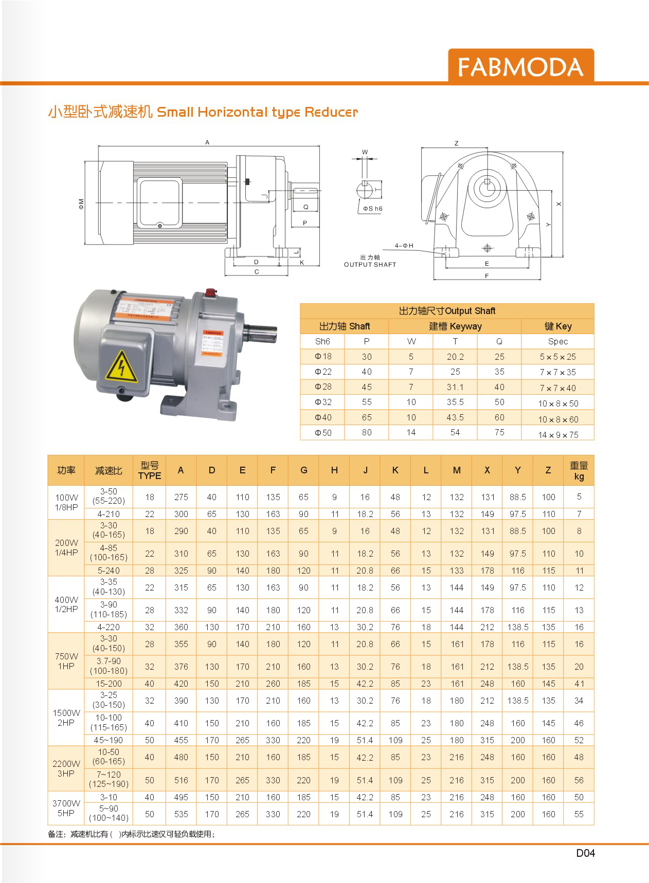 Bạn có thể tham khảo thêm thông số kỹ thuật của Motor giảm tốc FABmoda model FH theo hình bên dưới: