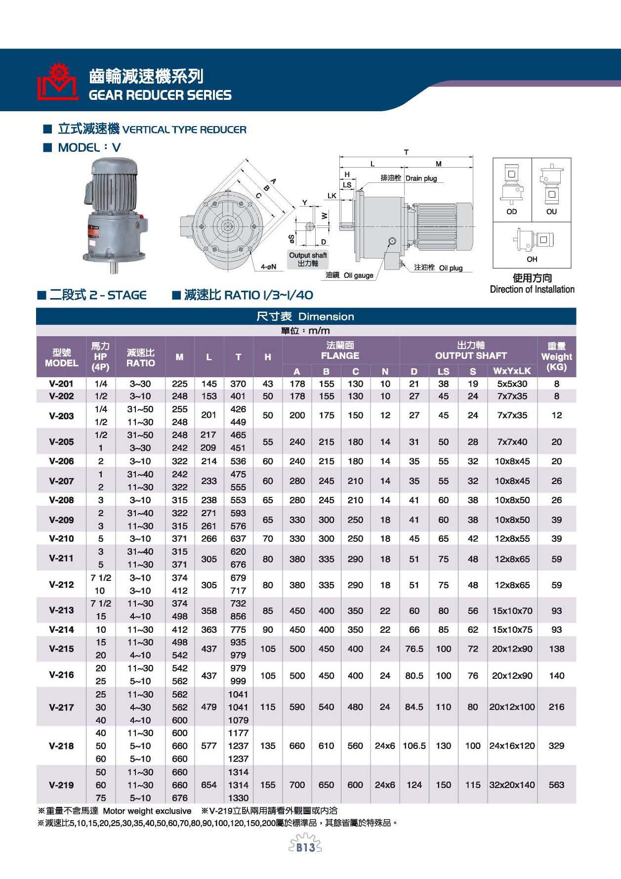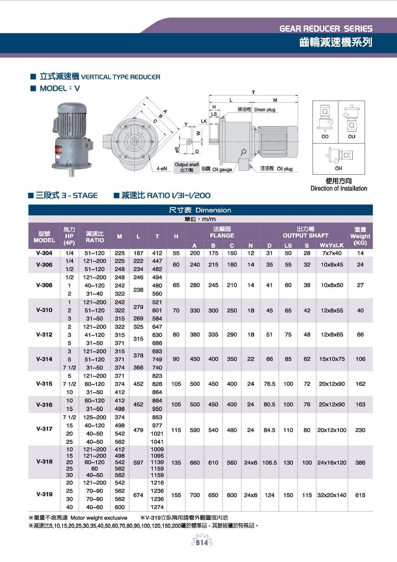 Bạn có thể tham khảo thêm thông số kỹ thuật của Motor giảm tốc Liming Model V theo hình bên dưới: